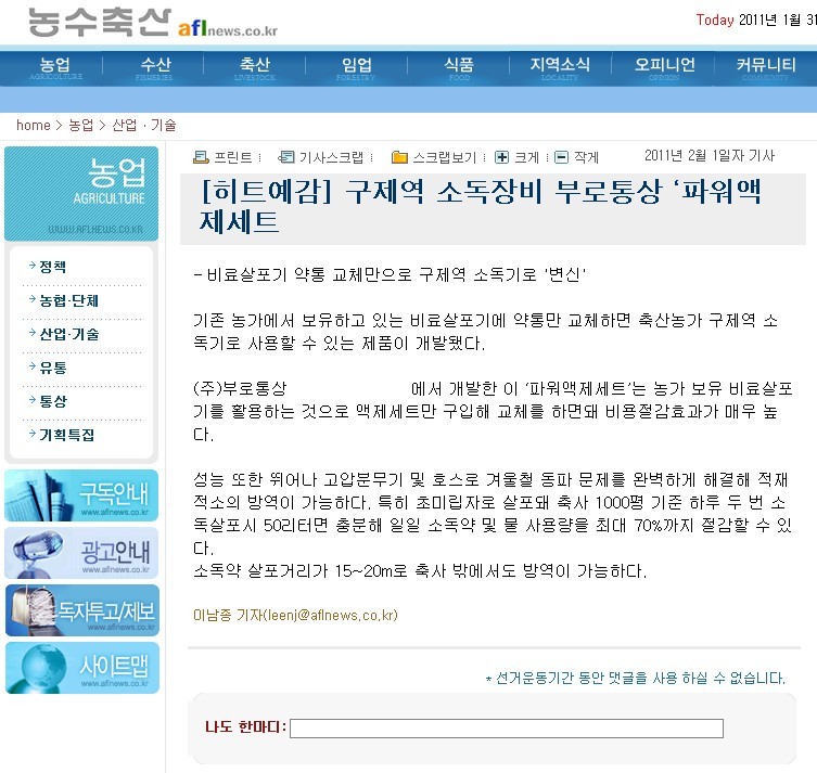 구제역 방역시 따뜻한물로 본 파워액제세트에 타서 사용하시면 소가 추워서 떨지 않습니다.
