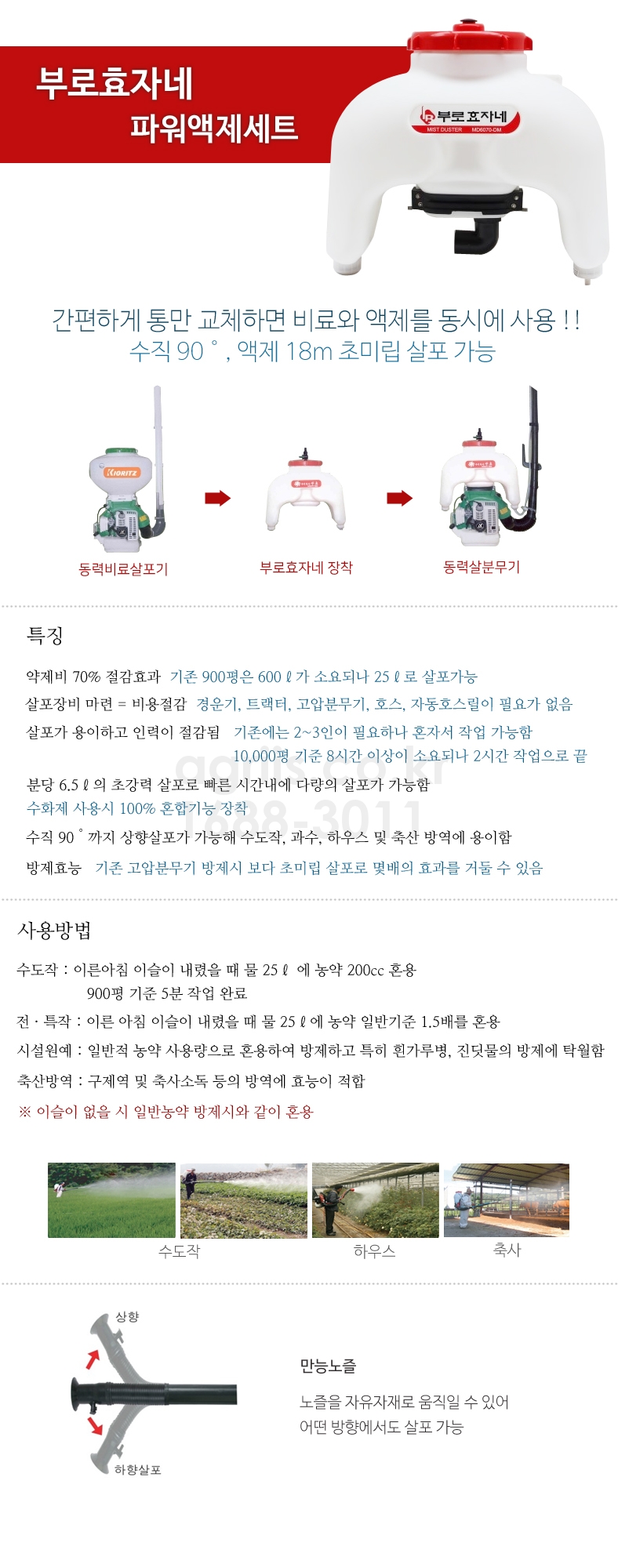고압분무기 사용시 1시간 소요되는데 비해, 10분이면 OK!!!