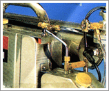 기계앞의 약제 밸브로 양을 조절하면서 분사시킨다.