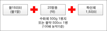 - 배합비율 : 석유(또는 경유) : 약제 = 80 : 1